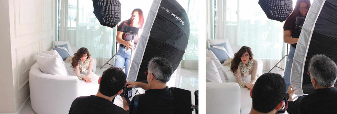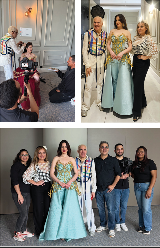 From New York, hair and makeup artist Paolo Divaldi joined the production to create a refined and luminous beauty look. The styling was natural and sophisticated, enhancing her radiance while elevating the couture narrative.