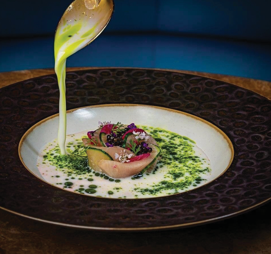 The culinary program redefines fine dining through globally inspired techniques and avant-garde compositions.